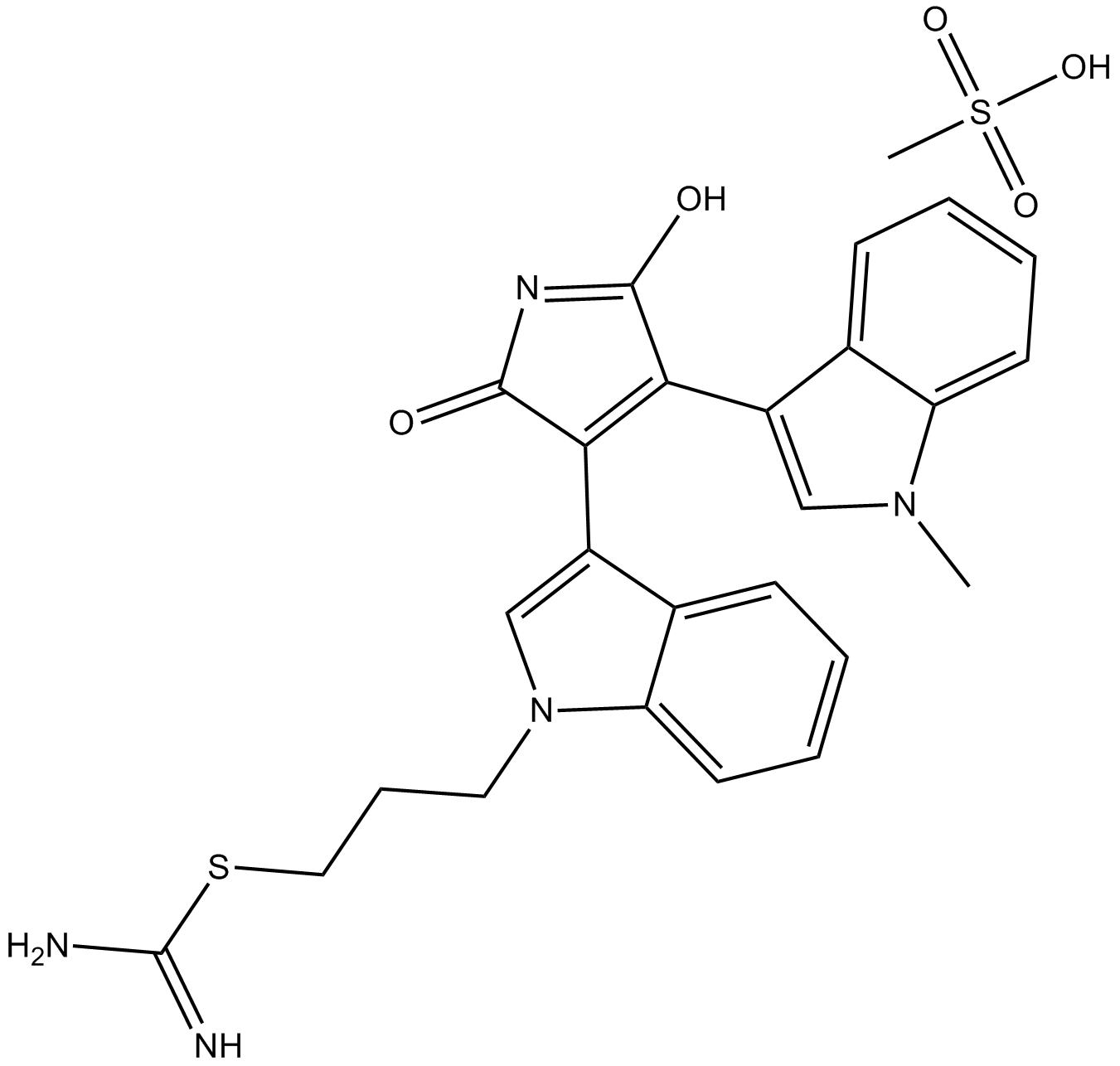 Ro 31-8220 methanesulfonate,Bisindolylmaleimide IX Mesylate,Bisindolylmaleimide IX (CAS#138489-18-6 目录号D910029)