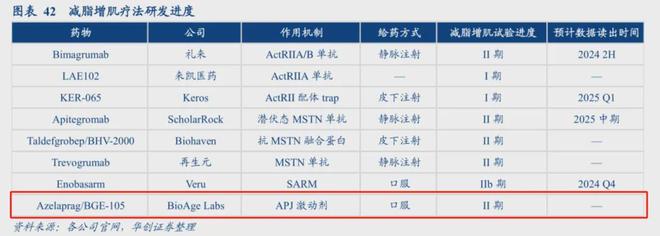 结语:Azelaprag的失利仅仅是大赛道的小插曲,2025年上半年全球将迎来“减重增肌”领域的密集催化,包括礼来Bima联用司美格鲁肽的二期数据读出、Scholar Rock公司Apitegromab联用GLP-1治疗肥胖患者二期临床数据读出、再生元Trevogrumab和Garetosmab两款药物读出二期数据,任何一个好的数据都将引爆这个领域的BD或者并购交易,而映射机会则是要靠投资者细细挖掘。