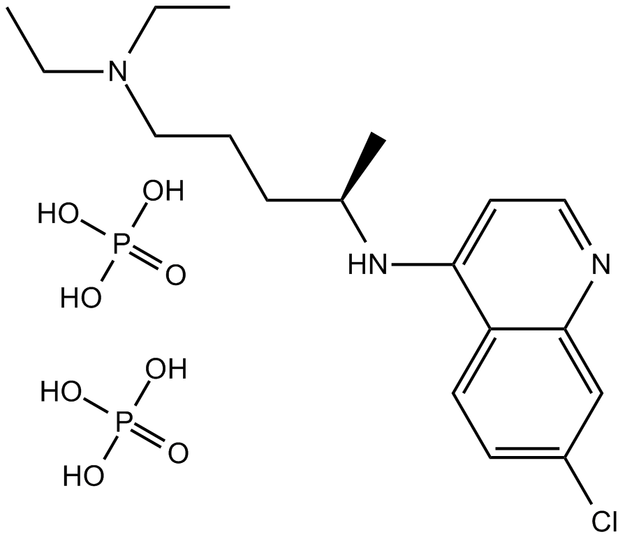 Chloroquine diphosphate是一种广泛用于治疗疟疾和类风湿性关节炎的抗疟疾和抗炎药。 Chloroquine 是 autophagy 和 toll-like receptors (TLRs) 的抑制剂。
