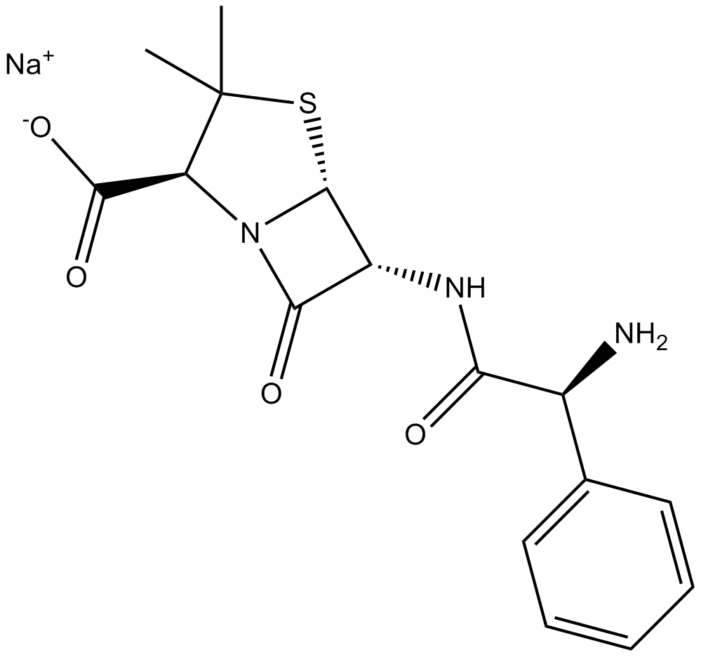 Ampicillin sodium,D-(-)-α-Aminobenzylpenicillin sodium salt,氨苄西林钠,氨苄青霉素钠 (CAS#69-52-3 目录号D803170)